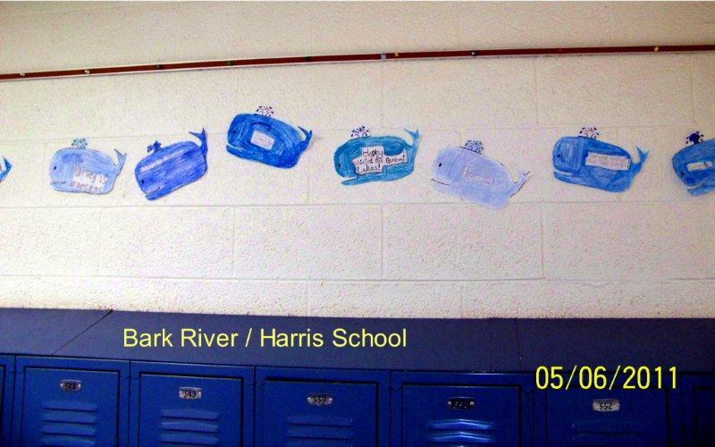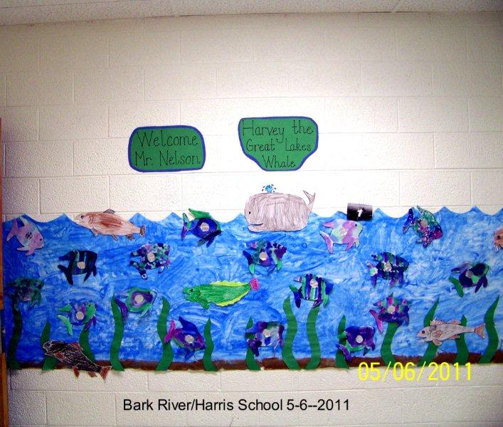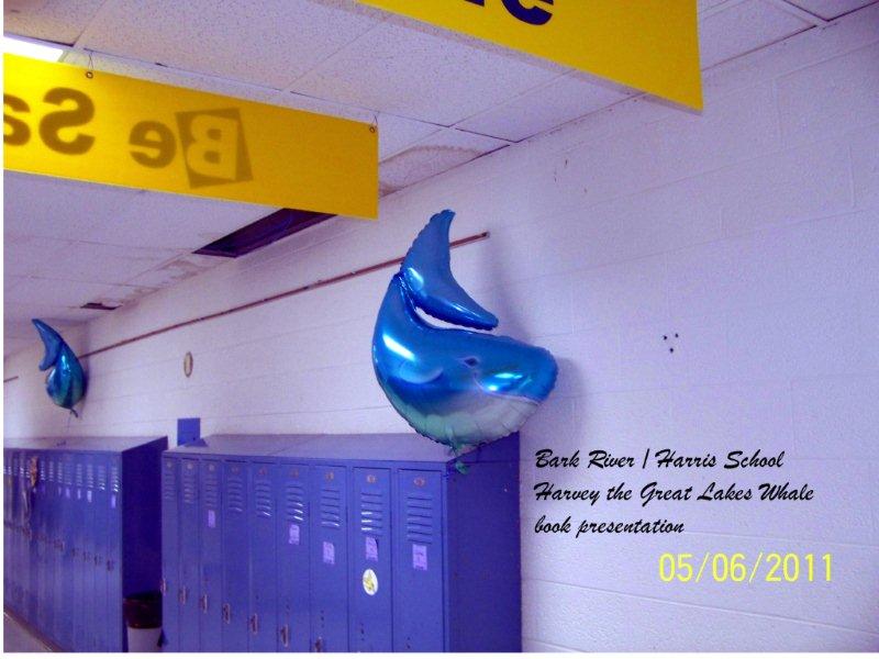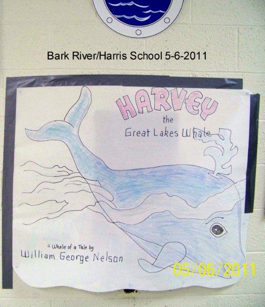 These pictures were posted all over the Bark River-Harris Michigan school when I did an authors day book presentation of my book, “Harvey the Great Lakes Whale“. In all day sessions I taught the basics of writing to 320 munchkins from kindergarten thru sixth grade.